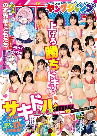 【「サキドルエース」の投票は雑誌収録の応募用紙でのみ可能です。デジタル版からの投票はできませんのでご注意ください。】【本号のデジタル版には特別付録「『のあ先輩はともだち。』特別付録8P小冊子 のあパイ・限界・袋とじイラスト集」は収録されておりません。あらかじめご了承ください。】※デジタル版ヤングジャンプは、紙版の同号より未掲載のコンテンツがございます。試し読みファイルのデジタル版目次や注意書きをご確認の上ご購入ください。/「ヤングジャンプ 2026 No.19」、紙と同時に配信!/【表紙&巻頭&センター&巻末グラビア】サキドルエース SURVIVAL SEASON15 ~アイドルは旅をする~/【YJブルーム】藤原実羽(Shibu3 project)/【巻頭カラー】『のあ先輩はともだち。』(あきやまえんま)/【センターカラー】『山劇』(峰浪りょう)、『4軍くん(仮)』(原作:森高夕次 漫画:末広光)/【三週連族!!! ゲスト作家ヤンキー読切(1)】『ふつうのあたしたち』(臓内ニガツ)/【特別読切】『26時の片想い』(藤原ハル)、『赤ちゃんに戻りたい』(露木真珠)/ほか、12作品を掲載! 続きを読む